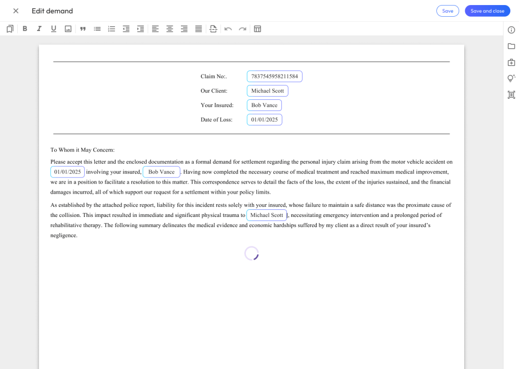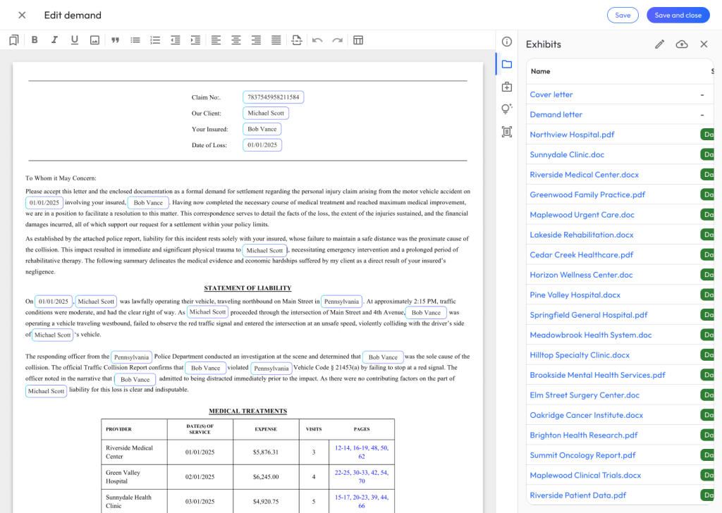 - Before we dive into the tool, can you walk me through your current process for drafting a bodily injury demand? What are the most time-consuming parts?